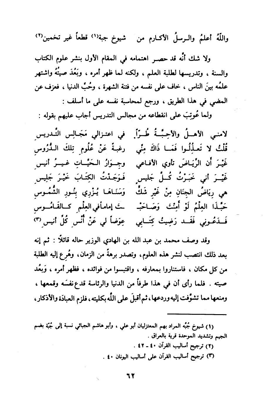 (¬1) شيوخ جُبَّه المراد بهم المعتزليان أبو علي، وأبو هاشم الجبائي نسبة إلى جُبّة بضم الجيم وتشديد الموحدة قرية بالعراق.