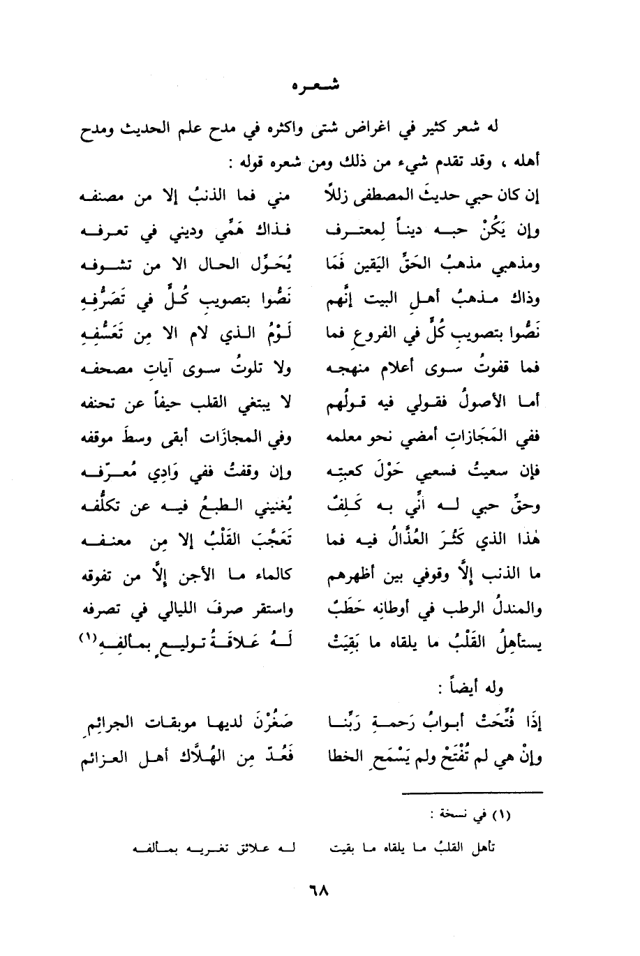 إن كان حبي حديثَ المصطفي زللاً ... مني فما الذنبُ إلا من مصنفه