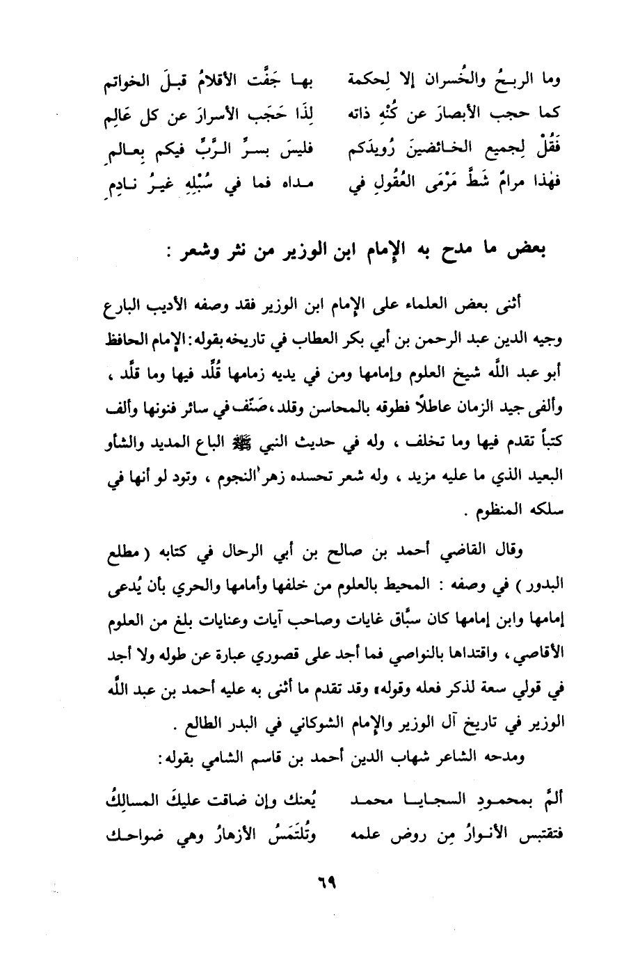 بعض ما مدح به الإمام ابن الوزير من نثر وشعر: