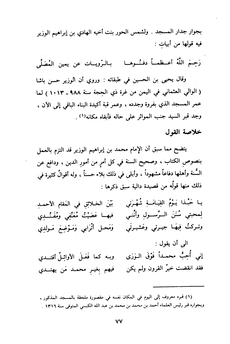 بجوار جدار المسجد. ولشمس الحور بنت أخيه الهادي بن إبراهيم الوزير فيه قولها من أبياتِ: