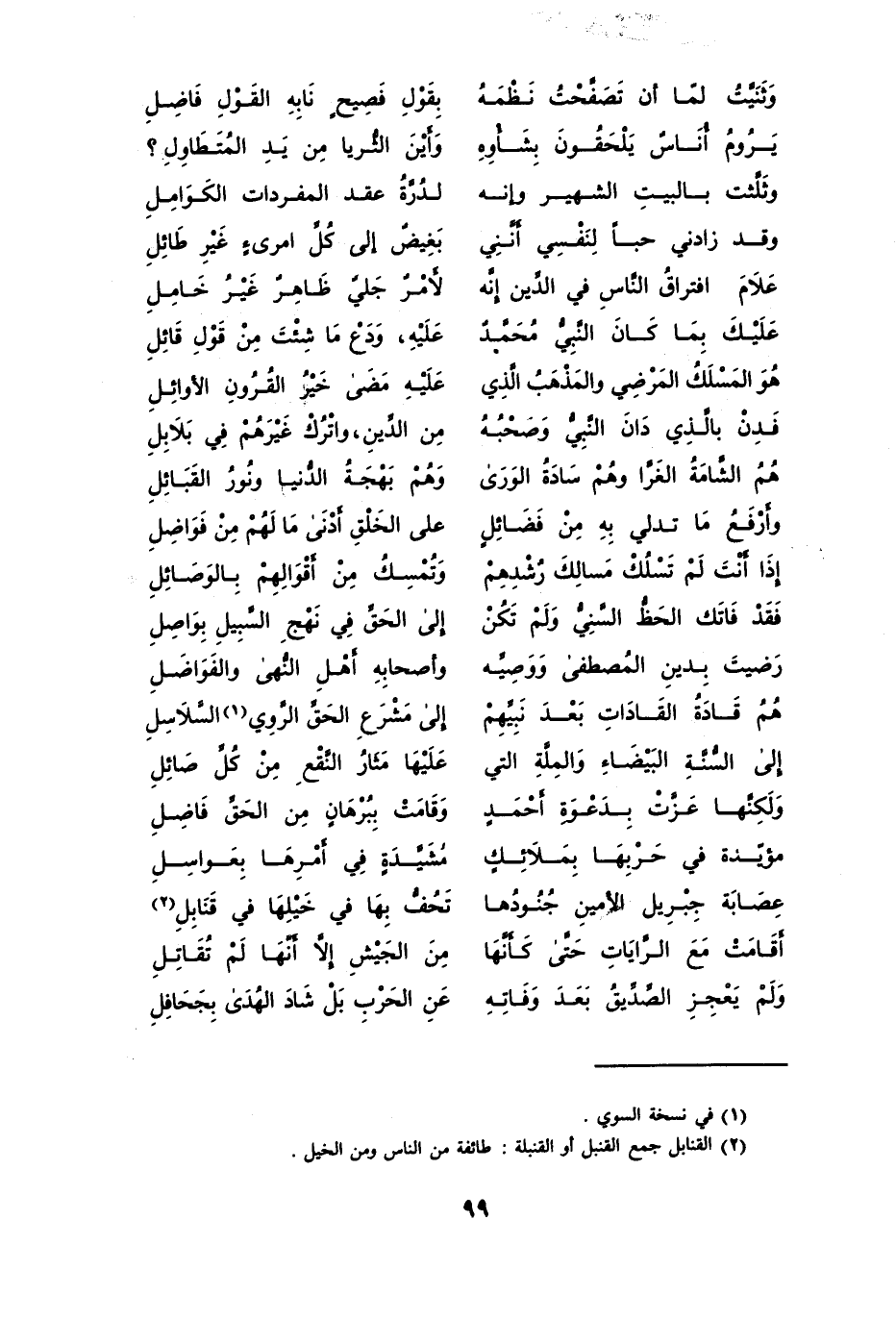 هُو المَسلكُ المَرضِي والمَذهَبُ الَّذِي ... عَليْهِ مَضَى خَيْرُ القُرُونِ الأوائِلِ