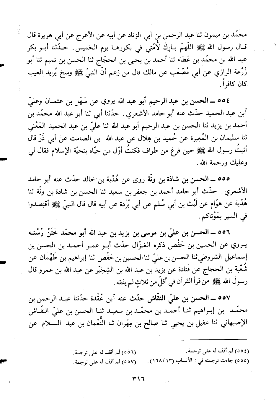 §554 - الْحَسَنُ بْنُ عَبْدِ الرَّحِيمِ أَبُو عَبْدِ اللَّهِ يَرْوِي عَنْ سَهْلِ بْنِ عُثْمَانَ، وَعَلِيِّ بْنِ عَبْدِ الْحَمِيدِ حَدَّثَ عَنْهُ أَبُو حَامِدٍ الْأَشْعَرِيُّ