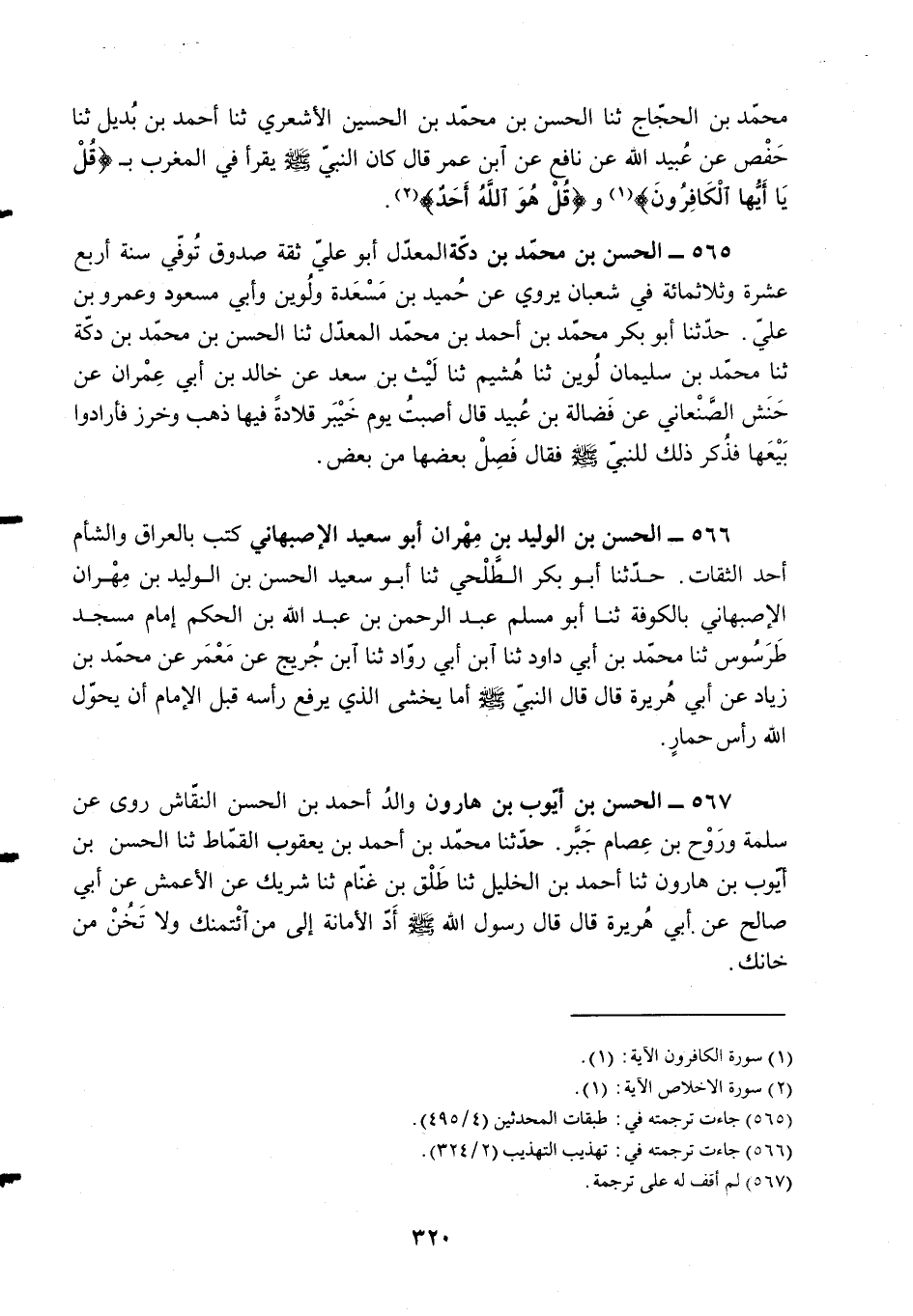 §566 - الْحَسَنُ بْنُ الْوَلِيدِ بْنِ مِهْرَانَ أَبُو سَعِيدٍ الْأَصْبَهَانِيُّ كُتِبَ بِالْعِرَاقِ وَالشَّأْمِ، أَحَدُ الثِّقَاتِ