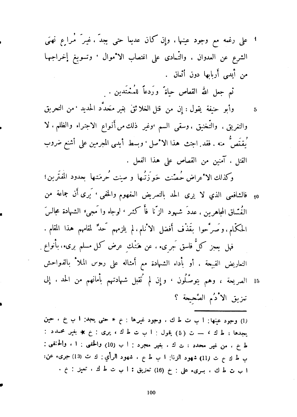 فأبو حنيفة يقول إن من قتل الخلائق من غير محدد الحديد من التغريق والتحريق والتخنيق وسقي السم وغير ذلك من أنواع الاجتراء والظلم لا يقتص منه فقد اجتثت هذا الأصل وبسط أيدي المجرمين على أشنع ضروب القتل آمنين من القصاص على هذا الفعل.