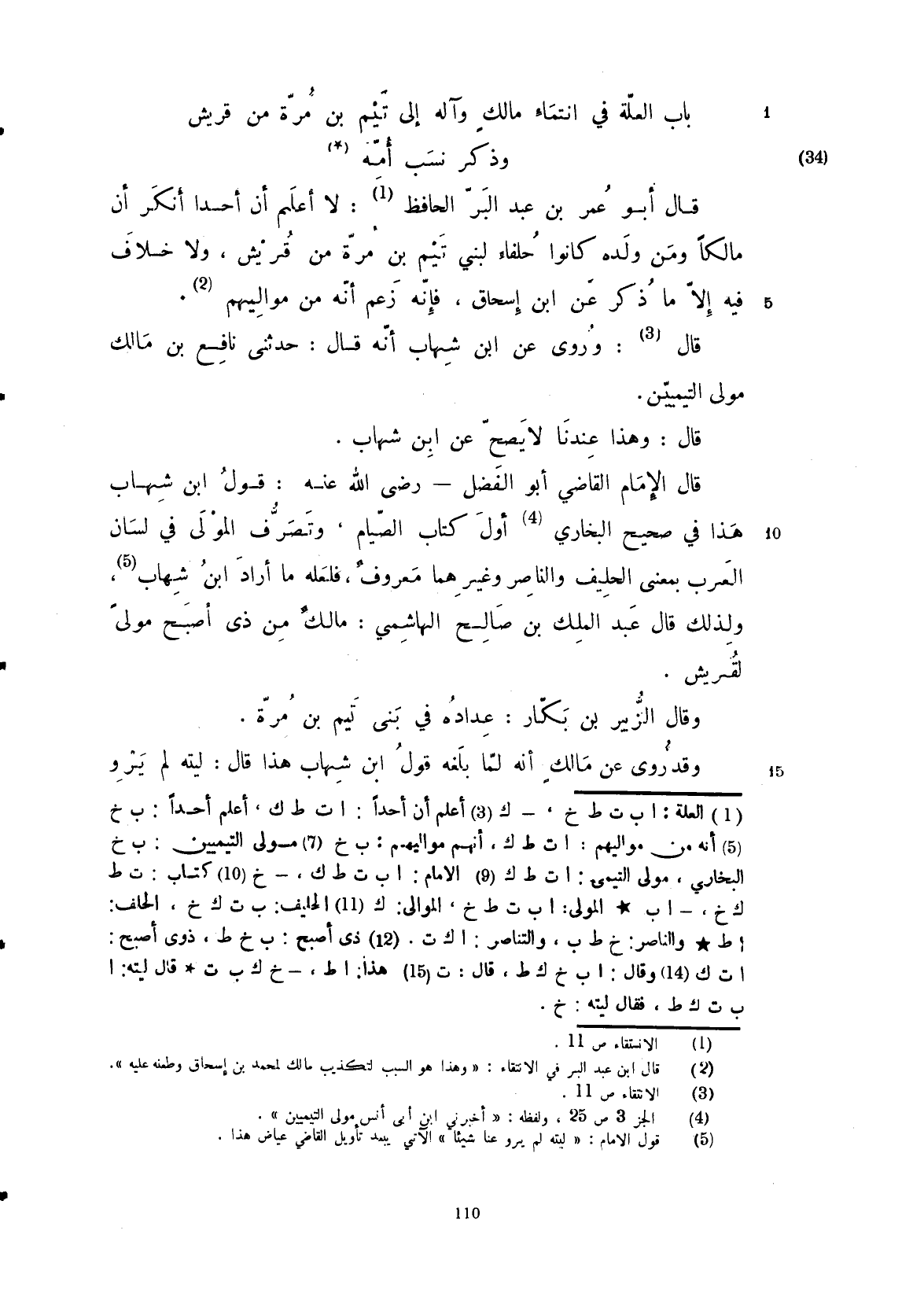 باب في انتماء مالك وآله إلى تيم بن مرة