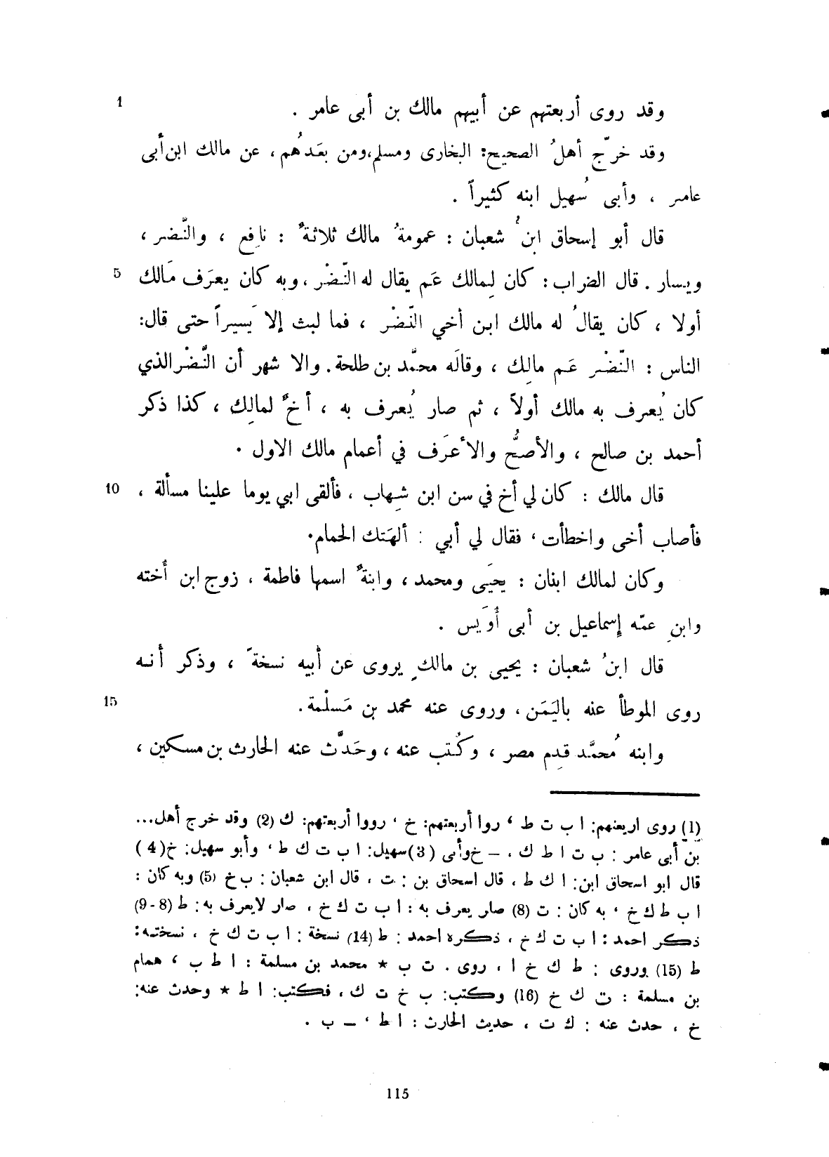 وقال محمد بن طلحة والأشهر أن النظر الذي كان به يعرف مالك أولاً ثم صار يعرف به أخ مالك كذا ذكر أحمد بن صالح والأصح والأعرف في أعمام مالك الأول.