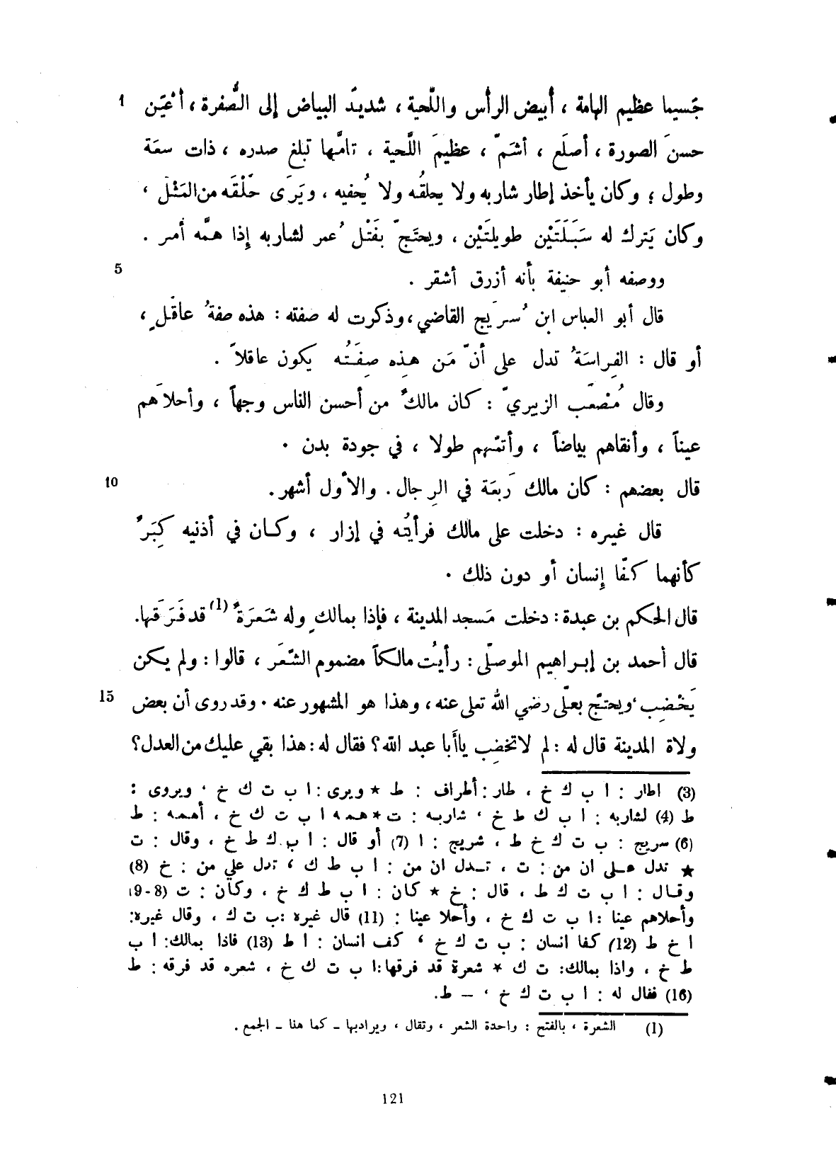 قال أحمد بن إبراهيم الموصلي رأيت مالكاً مضموم الشعر.