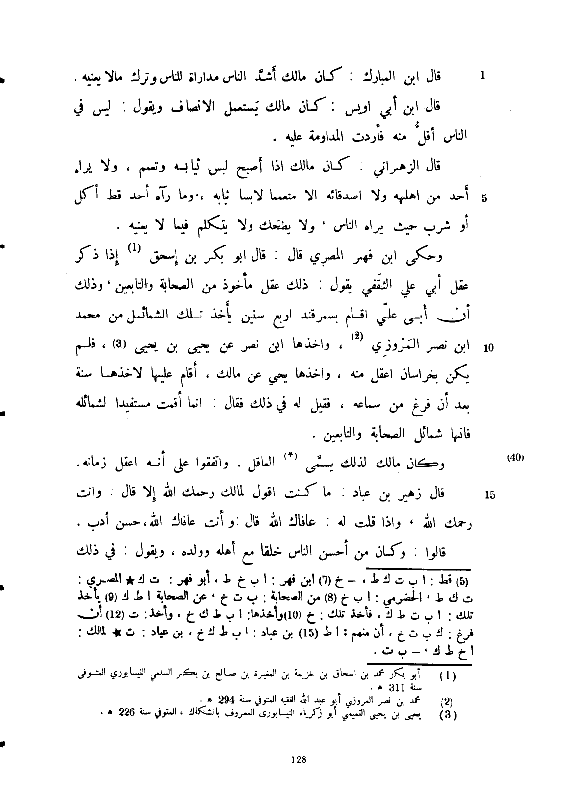 قال ابن المبارك: كان مالك أشد الناس مدارة للناس وترك ما لا يعنيه.