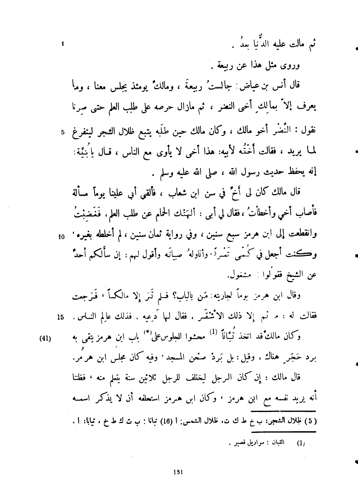 قال مالك إن كان الرجل ليختلف للرجل ثلاثين سنة يتعلم منه، فظننا أنه يريد نفسه مع ابن هرمز.