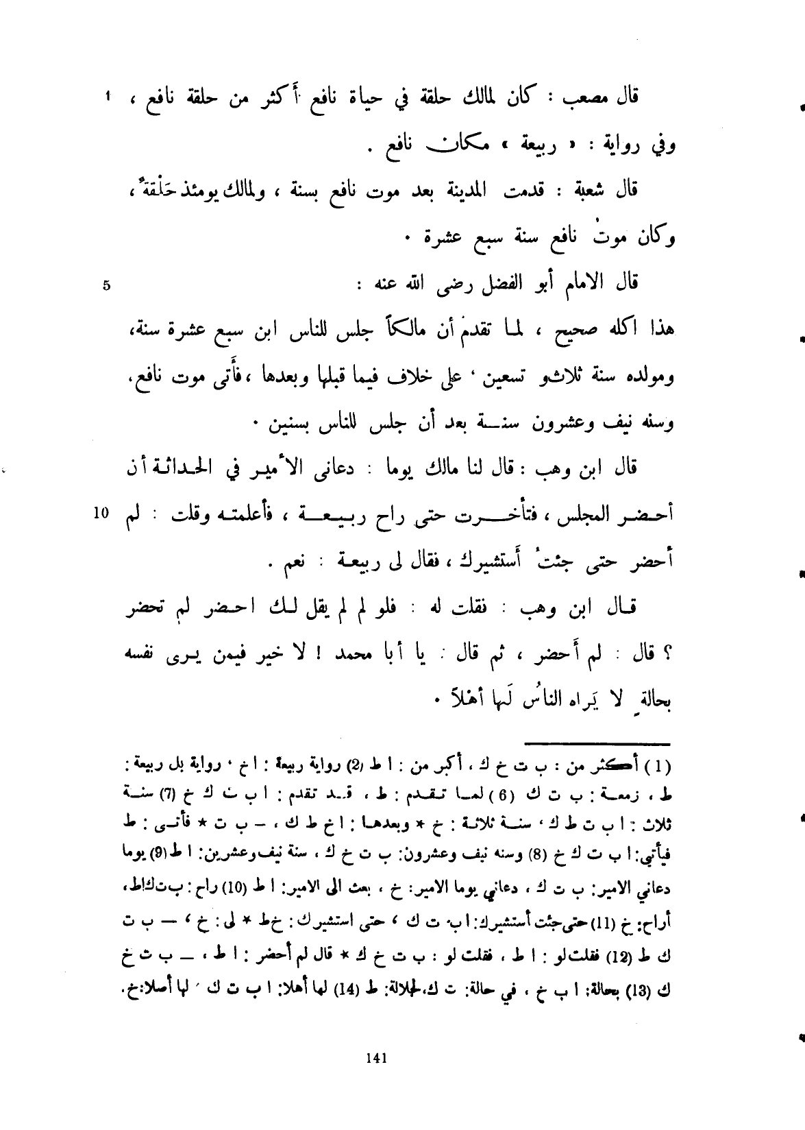 قال الإمام أبو الفضل رضي الله عنه: هذا كله صحيح، وقد تقدم أن مالكاً جلس للناس ابن سبع عشرة سنة، ومولده سنة ثلاث وتسعين على خلاف فيما قبلها، فيأتي موت نافع وسنه نيف وعشرون سنة، بعد أن جلس للناس بسنتين.