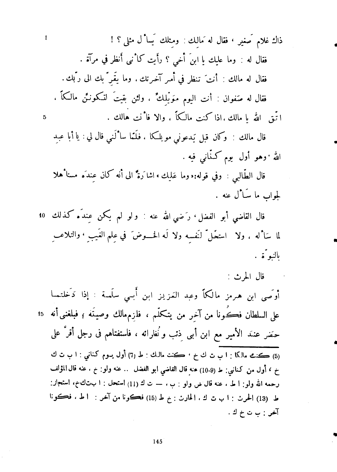 قال الحرث: أوصى ابن هرمز مالكاً وعبد العزيز بن أبي سلمة إذا دخلتما على السلطان فكونا آخر من يتكلم.
