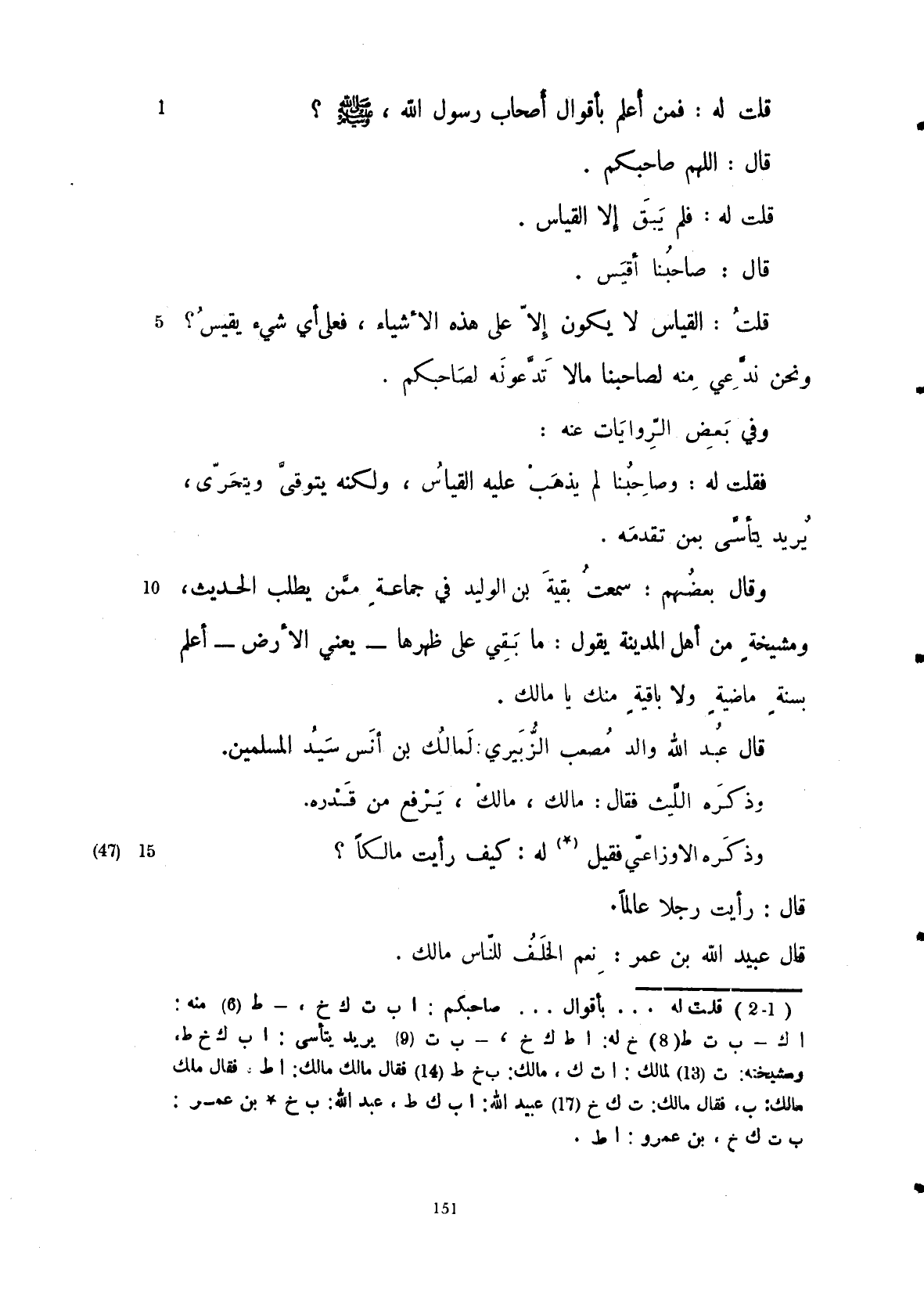 وفي بعض الرواية عنه، فقلت له: وما صاحبنا لم يذهب عليه القياس ولكنه يتوقى ويتحرى يريد يتأسى بمن تقدمه.