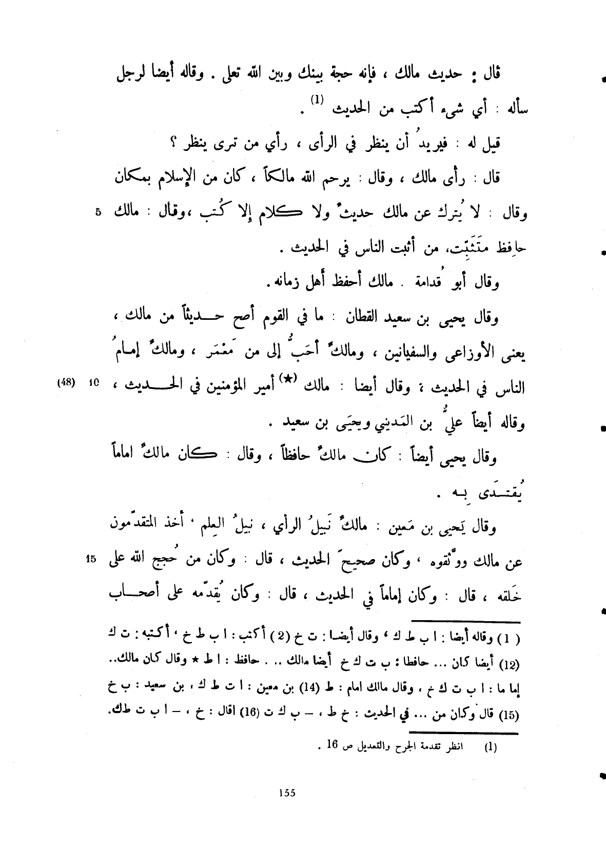 وقال أيضاً مالك أمير المؤمنين في الحديث.