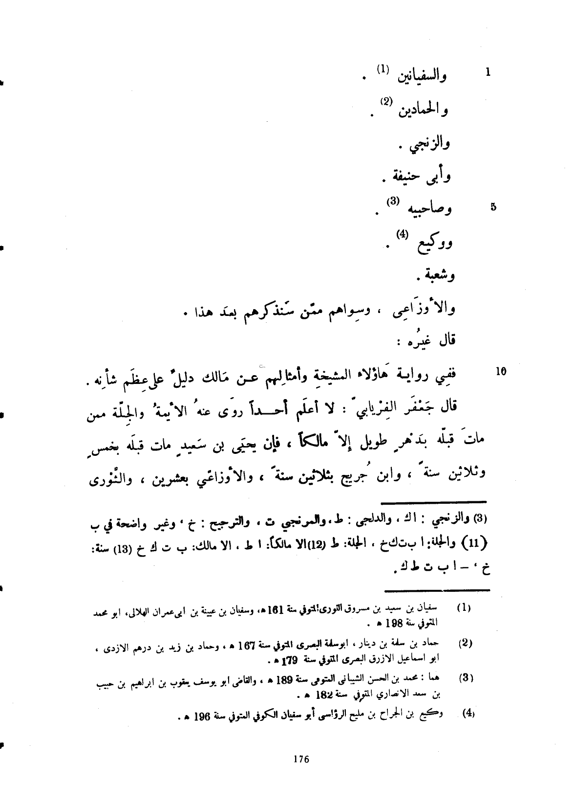 والسفياني والحماد المزني، وأبو حنيفة، وصاحبه ووكيع وشعبة والأوزاعي وسواهم، ممن سنذكرهم بعد هذا.