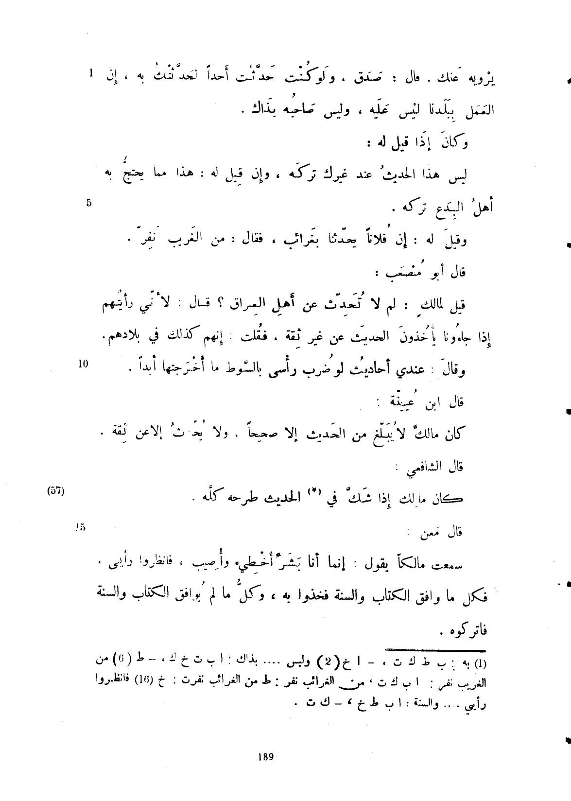 قال أبو مصعب: قيل لمالك لم لا تحدث عن أهل العراق.
