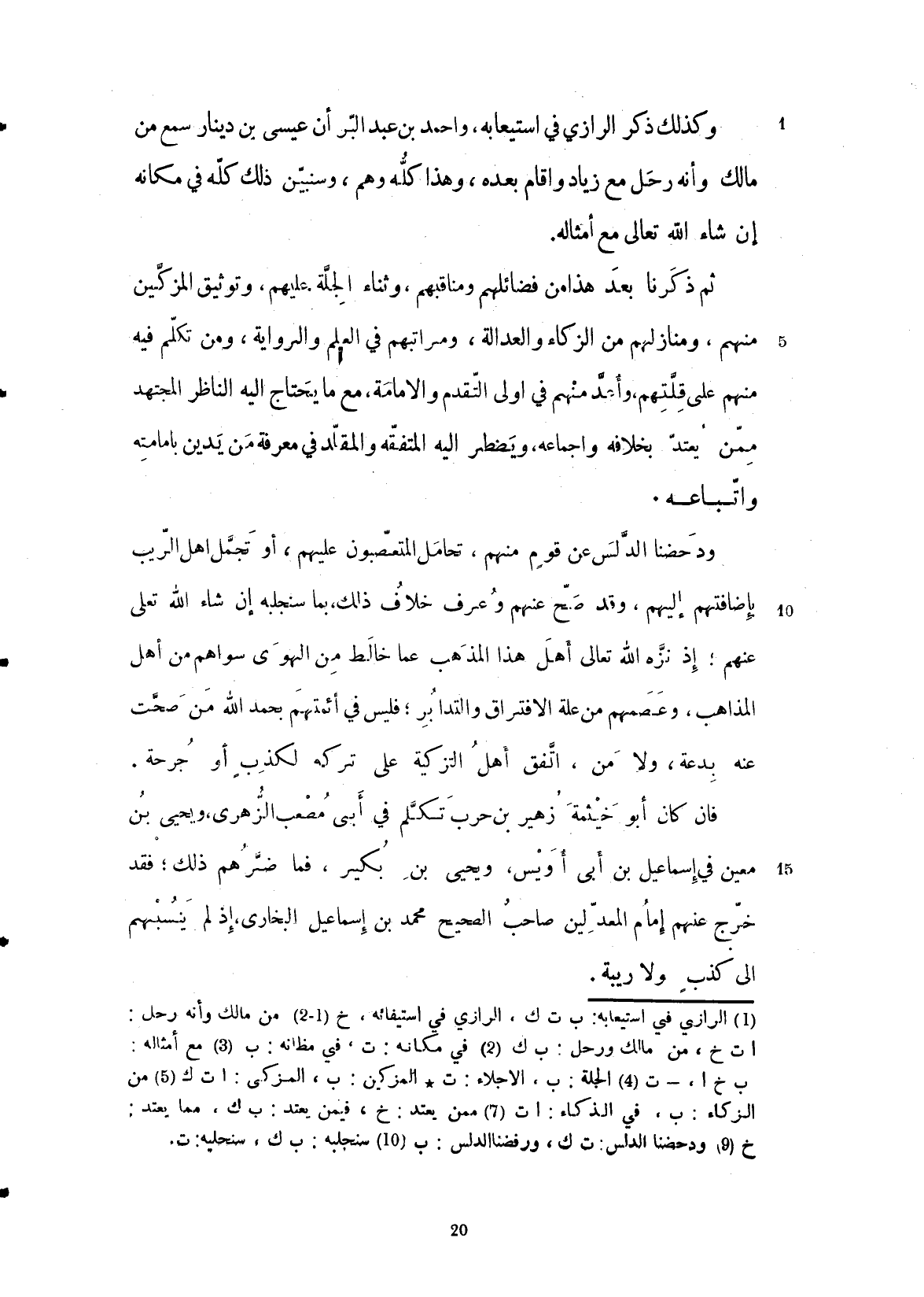 وقد صح وعرف خلاف ذلك بما سنجلبه إن شاء الله تعالى، إذ نزه الله تعالى أهل هذا المذهب عما خالط من الهوى سواهم من أهل المذاهب، وعصمهم من علة الافتراق والتدابير فليس في أيمتهم بحمد الله من صحت عنه بدعة، ولا من اتفق أهل التزكية على تركه لكذب أو جرحة، وإن كان أبو خيثمة زهير بن حرب تكلم في أبي مصعب الزهري، ويحيى بن معين في إسماعيل بن أبي أويس ويحيى بن بكير. فما ضرهم ذلك. قد خرج عنهم إمام المعدلين صاحب الصحيح محمد بن إسماعيل البخاري، إذ لم ينسبهم إلى كذب ولا ريبة،