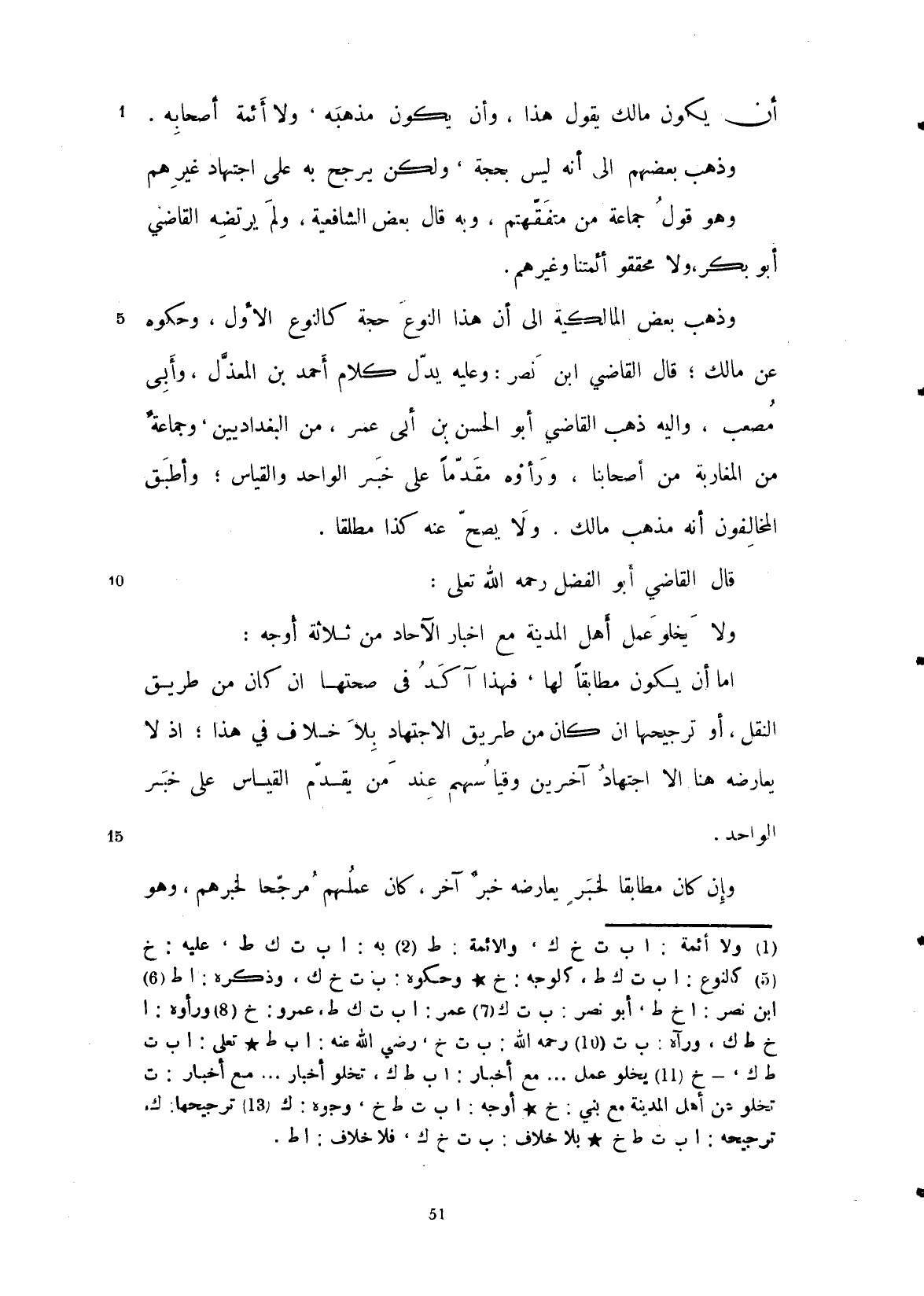 أن يكون مالك يقول هذا أو أن يكون مذهبه ولا الأئمة أصحابه، وذهب بعضهم إلى أنه ليس بحجة، ولكن يرجح به على اجتهاد غيرهم، وهو قول جماعة من متفقيهم وبه قال بعض الشافعية ولم يرتضه القاضي أبو بكر ولا محققو أيمتنا وغيرهم، وذهب بعض المالكية إلى إن هذا النوع حجة كالنوع الأول وحكوه عن مالك.
