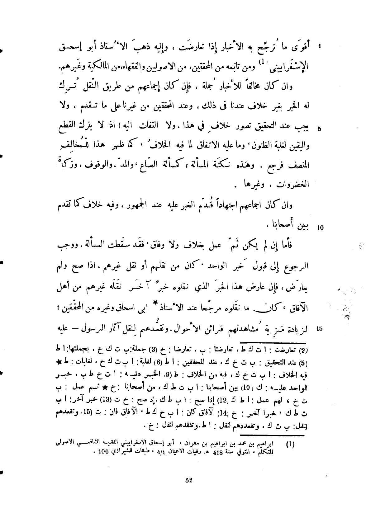 أقوى ما ترجح به الأخبار إذا تعارضت، وإليه ذهب الأستاذ أبو إسحاق الاسفراييني ومن تابعه من المحققين من الأصوليين والفقهاء من المالكية وغيرهم، وإن كان مخالفاً للأخبار جملة فإن كان إجماعهم من طريق النقل ترك له الخبر بغير خلاف عندنا في ذلك، وعند المحققين من غيرنا على ما تقدم، ولا يجب عند التحقيق تصور خلاف في هذا ولا التفات إليه، إذ لا يترك القطع واليقين لغلبات الظنون، وما عليه الاتفاق لما فيه الخلاف كما ظهر هذا للمخالف المنصف فرجع، وهذه نكتة مسألة الصاع والمد والوقوف وزكاة الخضروات وغيرها، وإن كان إجماعهم اجتهاداً أقدم خبر الواحد عليه عند الجمهور، وفيه خلاف كما تقدم من أصحابنا، فأما إن لم يكن لهم عمل بخلافه ولا وفاق فقد سقطت المسألة ووجب الرجوع إلى خبر الواحد كان من نقلهم أو من نقل غيرهم إذا صح ولم يعارض، فإن عارض هذا الخبر الذي نقلوه خبر آخر نقله غيرهم من أهل الآفاق كان ما نقلوه مرجحاً عند الأستاذ أبي إسحاق وغيره من المحققين لزيادة قرب مشاهدتهم قرائن الأحوال وتعددهم لنقل آثار الرسول عليه