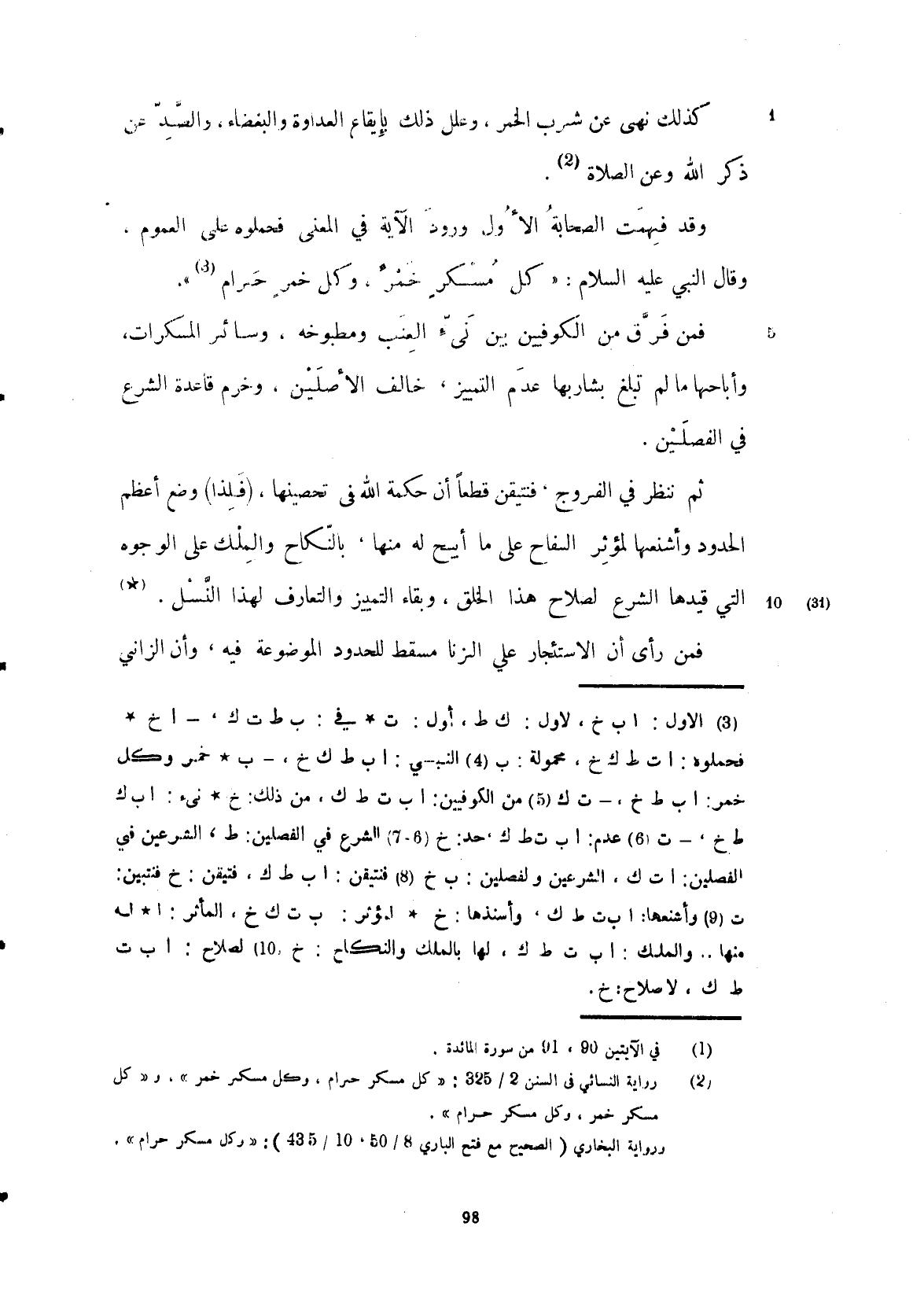 فمن فرق من الكوفيين بين نبيذ العنب ومطبوخه وسائر المسكرات أباحها ما لم تبلغ بشاربها عدم التمييز خالف الأصلين وخرج قاعدة الشرع في الفصلين، ثم ننظر في الفروج فنتيقن أن حكمة الله في تحصينها وضع أعظم الحدود وأشنعها لمؤثر السفاح على ما أبيح له منها بالنكاح، والملك على الوجوه التي قيدها الشرع لصلاح هذا الخلق وبقاء التمييز والمعارف لهذا النسل، فمن رأى أن الاستئجار على الزنى مسقط للحدود الموضوعة فيه، وأ، الزاني