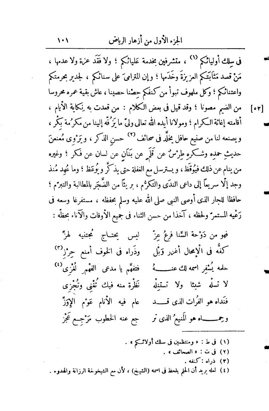 في سلك أوليائكم؛ متشرفين بخدمة عليائكم؛ ولا فقد عزة ولا عدمها، من قصد مثابتكم العزيزة وخدمها؛ وإنَّ المترامي على سنائكم، لجدير بحرمتكم واعتنائكم؛ وكل ملهوف تبوأ من كنفكم حصنا حصينا، عاش بقية عمره محروسا من الضيم مصونا؛ وقد قيل في بعض الكلام: من قعدت به نكاية الأيام، أقامته إغاثة الكرام؛ ومولانا أيده الله تعالى ولي ما يزفه إلينا من مكرمة بكر، ويصنعه لنا من صنيع حافل يخلد في صحائف حسن الذكر، ويروى معنعن حديث حمده وشكره طرس عن قلم عن بنان عن لسان عن فكر؛ وغيره من نيام عن ذلك فيوقظ، ويسترسل مع الغفلة حتى يذكر ويوعظ؛ وما عهد منذ وجد إلا سريعا إلى داعي الندى والتكرم، بريئاً من الضجر بالمطالبة والتبرم؛ حافظ للجار الذي أوصى النبي) بحفظه، مستغفرا وسعه في رعيه المستمر ولحظه، آخذاً من حسن الثناء في جميع الأوقات والآناء بحظه: