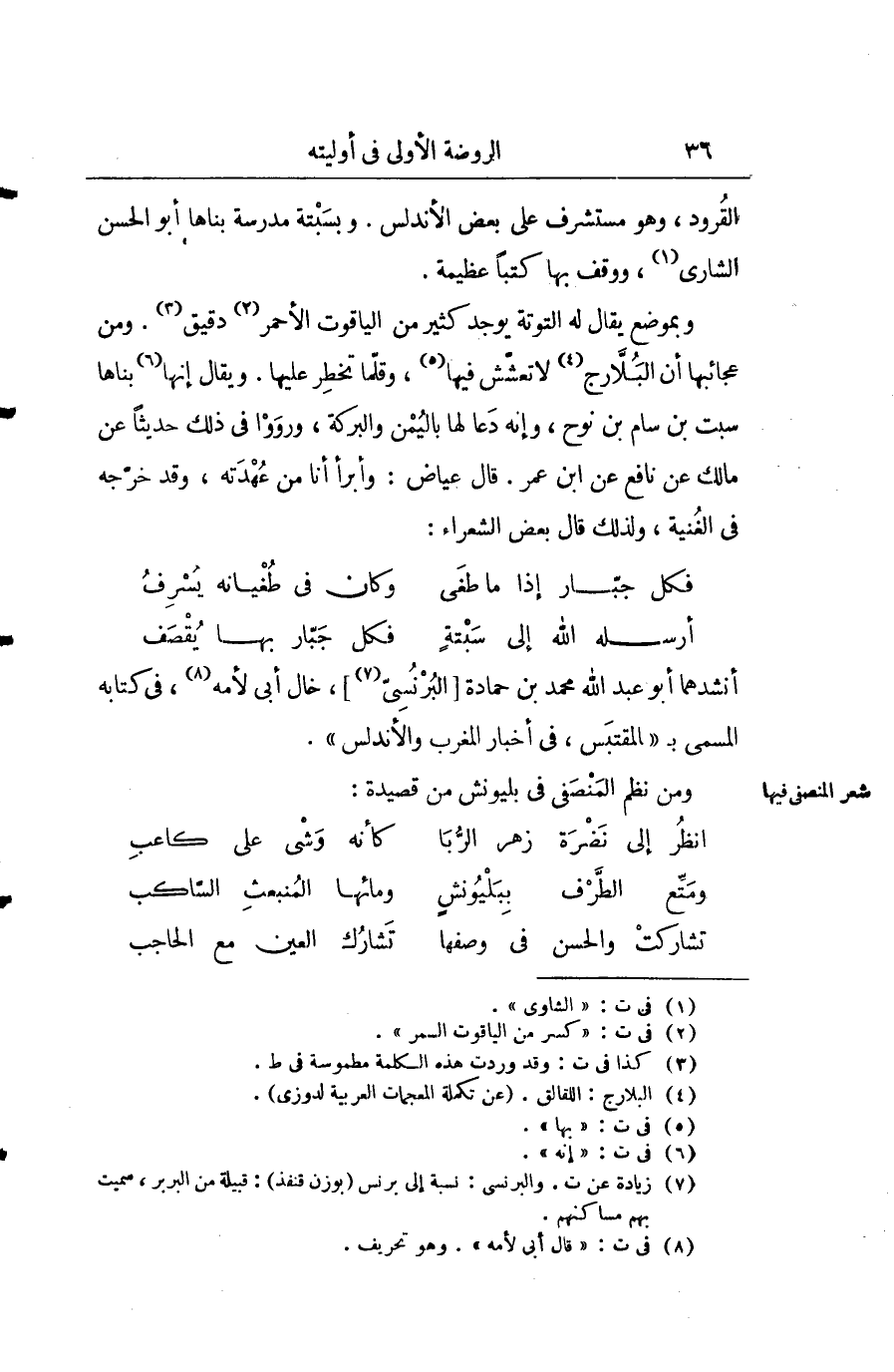 ومن نظم المنصفي في بليونش من قصيدة: