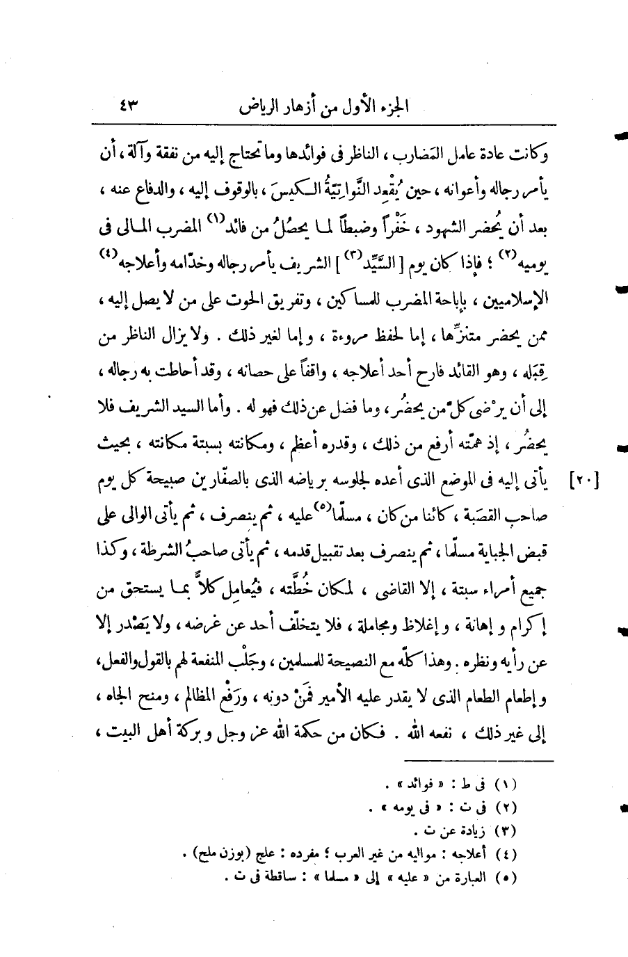 وكانت عادة عامل المضارب، الناظر في فوائدها وما تحتاج إليه من نفقة وآلة، أنَّ يأمر رجاله وأعوانه، حين يقعد النواتية الكيس، بالوقوف إليه، والدفاع عنه، بعد أنَّ يحضر الشهود، خفراً وضبطاً لمّا يحصل من فائدة المضرب المالي في يوميه؛ فإذا كان يوم السيد الشريف يأمر رجاله وخادمه وأعلاجه الإسلاميين، بإباحة المضرب للمساكين، وتفريق الحوت على من لا يصل إليه، ممن يحضر متنزها، إما لحفظ مروءة، وإما لغير ذلك. ولا يزال الناظر من قبله، وهو القائد فارح أحد أعلاجه، واقفاً على حصانه، وقد أحاطت به رجاله، إلى أنَّ يرضى كل من يحضر، وما فضل عن ذلك فهو له. وأما السيد الشريف فلا يحضر، إذ همته أرفع من ذلك، وقدره أعظم، ومكانته بسبته مكانته، بحيث يأتي إليه في الموضع الذي أعده لجلوسه برياضة الذي بالصفارين صبيحة كل يوم صاحب القصبة، كائنا من كان، مسلماً عليه، ثم ينصرف، ثم يأتي الوالي على قبض الجباية مسلماً، ثم ينصرف بعد تقبيل قدمه، ثم يأتي صاحب الشرطة، وكذا جميع أمراء سبتة، إلاّ القاضي، لمكان خطته، فيعامل كلا بما يستحق من إكرام وإهانة، وإغلاظ ومجاملة، فلا يتخلف أحد عن غرضه، ولا يصدر إلاّ عن رأيه ونظره. وهذا كله مع النصيحة للمسلمين، وجلب المنفعة لهم بالقول والفعل، وإطعام الطعام الذي لا يقدر عليه الأمير فمن دونه، ورفع المظالم، ومنح الجاه، إلى غير ذلك، نفعه الله. فكان من حكمة الله عز وجل وبركته أهل البيت،