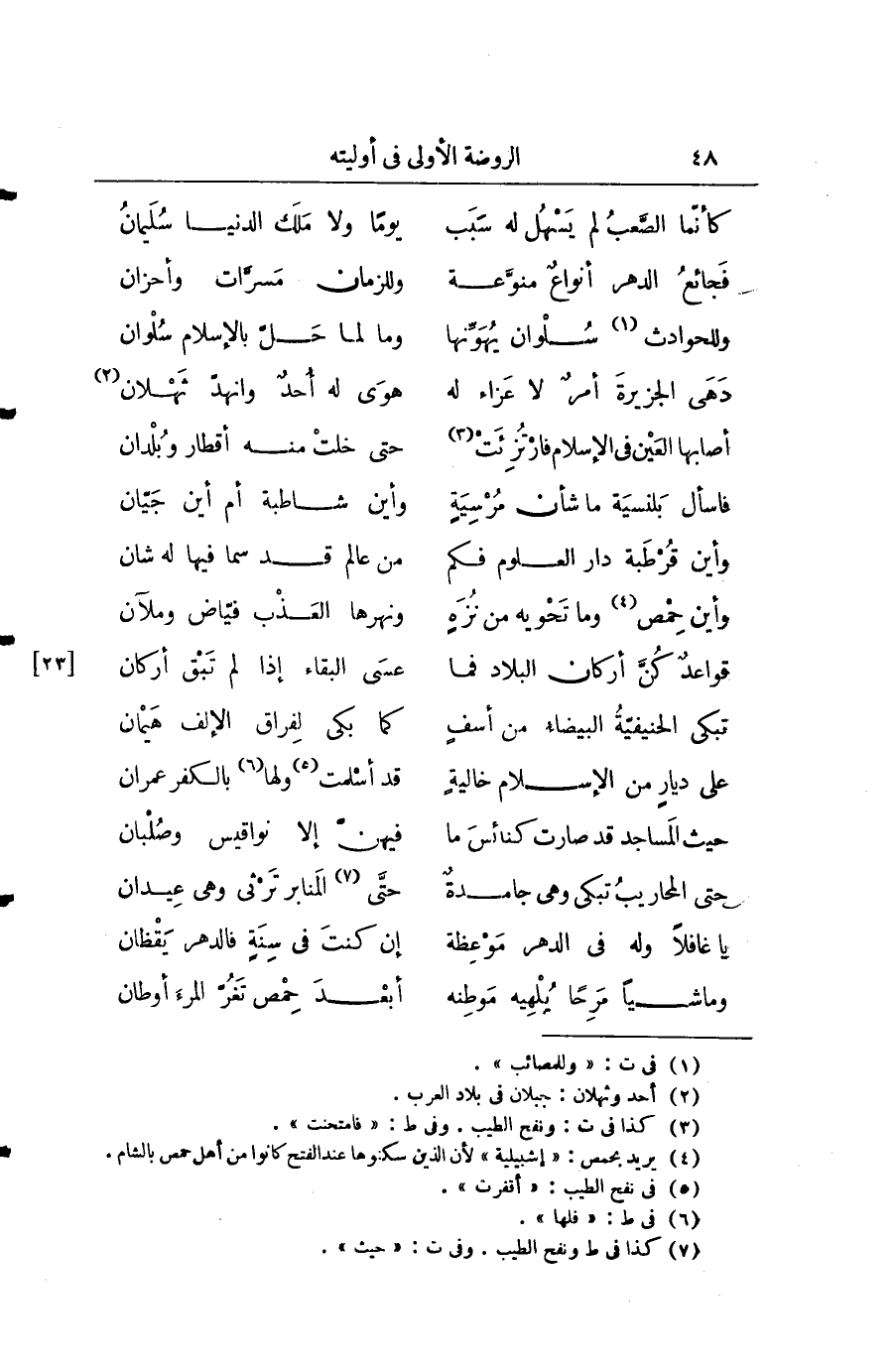 حيث المساجد قد صارت كنائس ما ... فيهن إلاّ نواقيس وصلبان