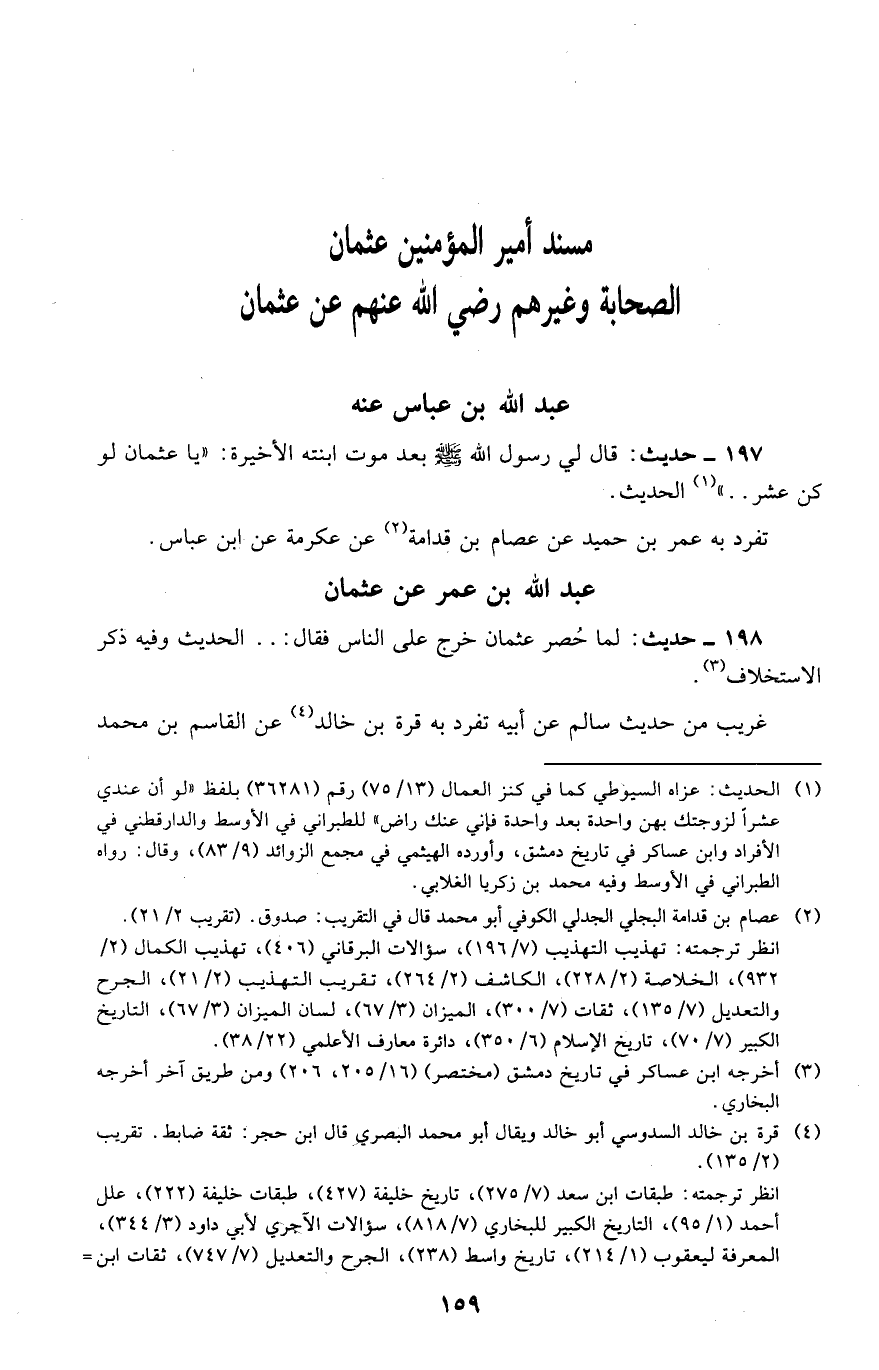 - مُسْند أَمِير الْمُؤمنِينَ عُثْمَان الصَّحَابَة وَغَيرهم رَضِي الله عَنْهُم عَن عُثْمَان