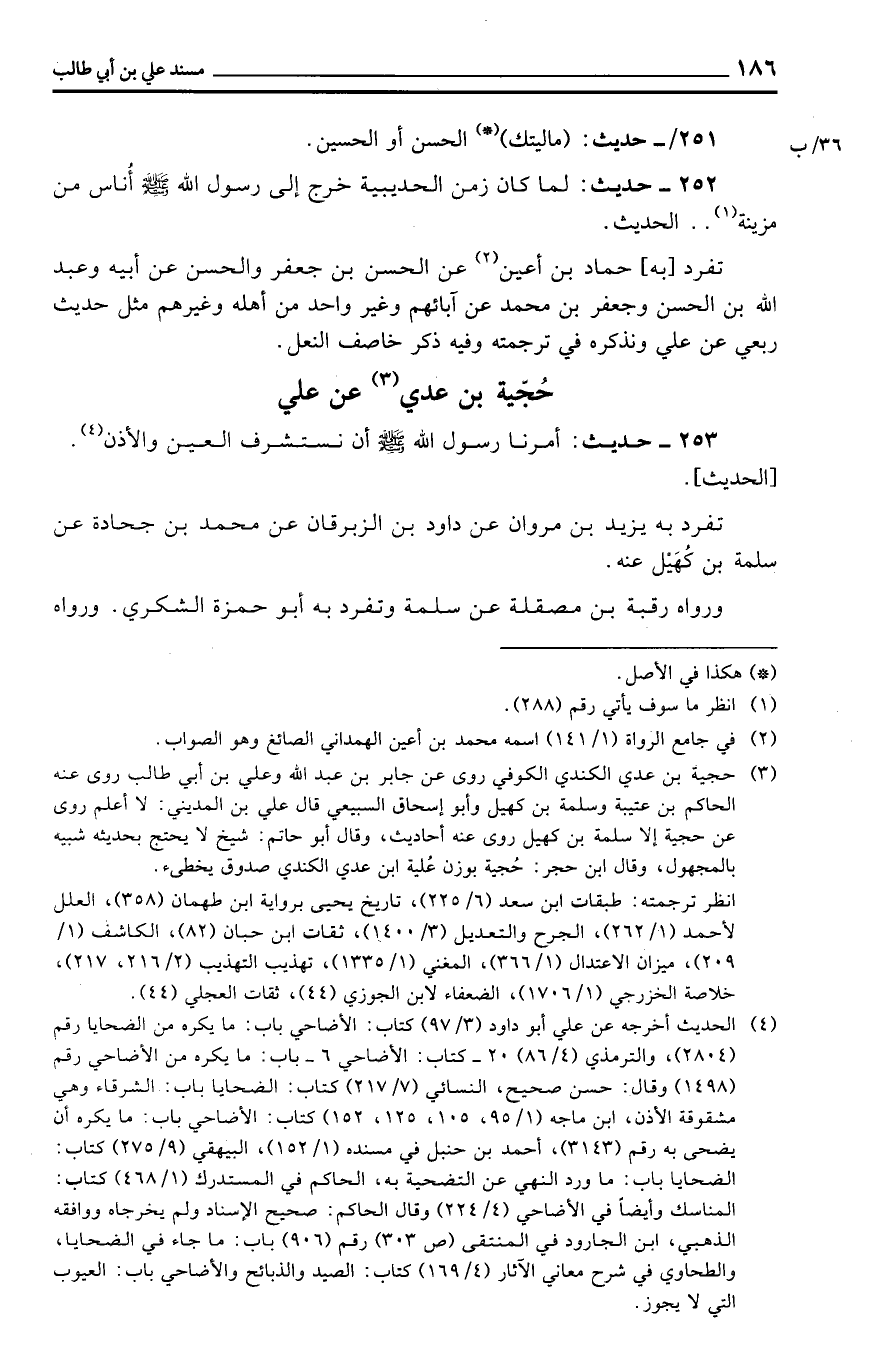 تفرد [بِهِ] حَمَّاد بن أعين عَن الْحسن بن جَعْفَر وَالْحسن عَن أَبِيه وَعبد الله بن الْحسن وجعفر بن مُحَمَّد عَن آبَائِهِم وَغير وَاحِد من أَهله وَغَيرهم مثل حَدِيث ربعي عَن عَليّ ونذكره فِي تَرْجَمته وَفِيه ذكر خاصف النَّعْل.