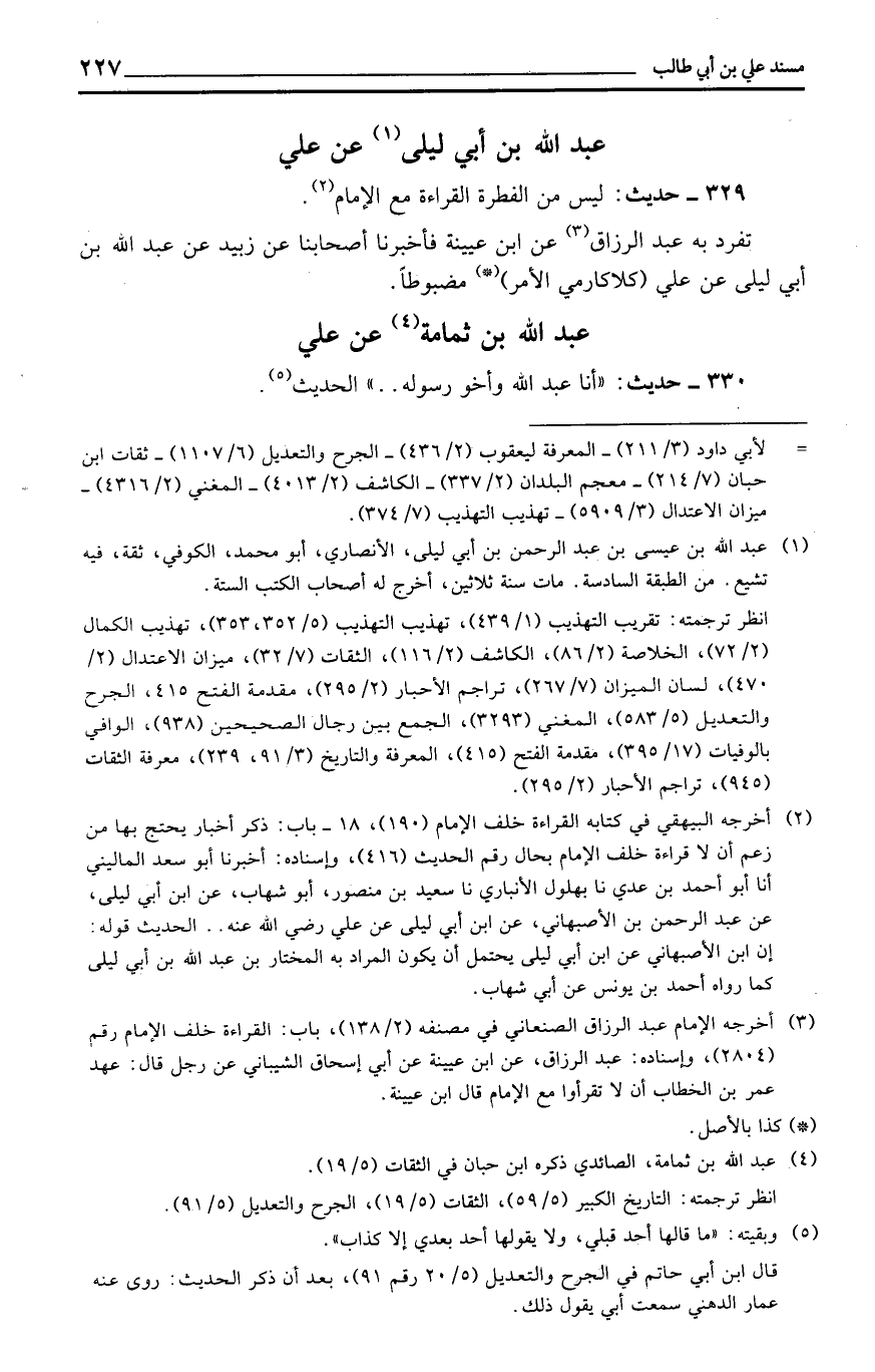تفرد بِهِ عبد الرَّزَّاق عَن ابْن عُيَيْنَة فَأخْبرنَا أَصْحَابنَا عَن زبيد عَن عبد الله بن أبي ليلى عَن عَليّ (كلا كارمي الْأَمر) مضبوطا.