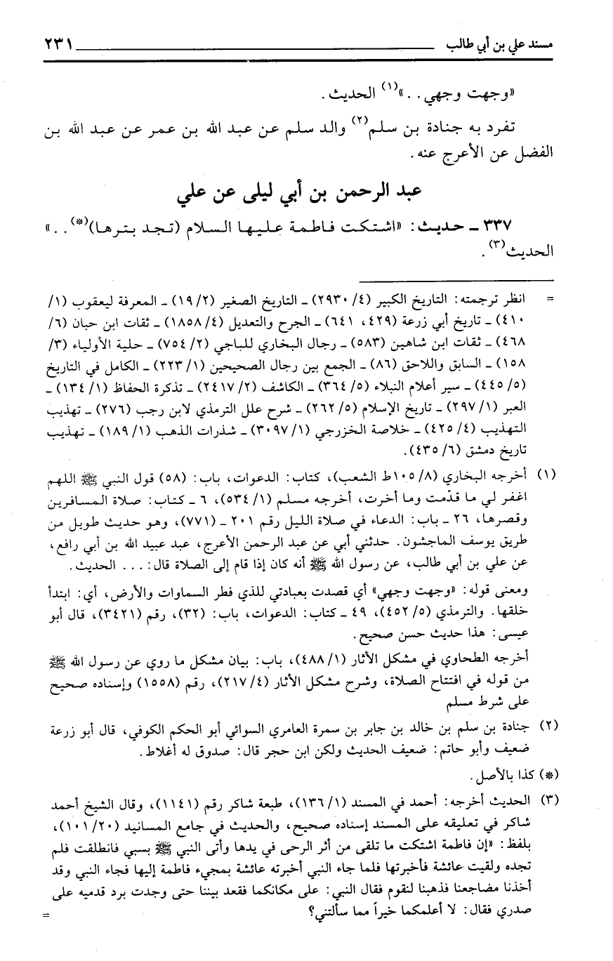عبد الرَّحْمَن بن أبي ليلى عَن عَليّ