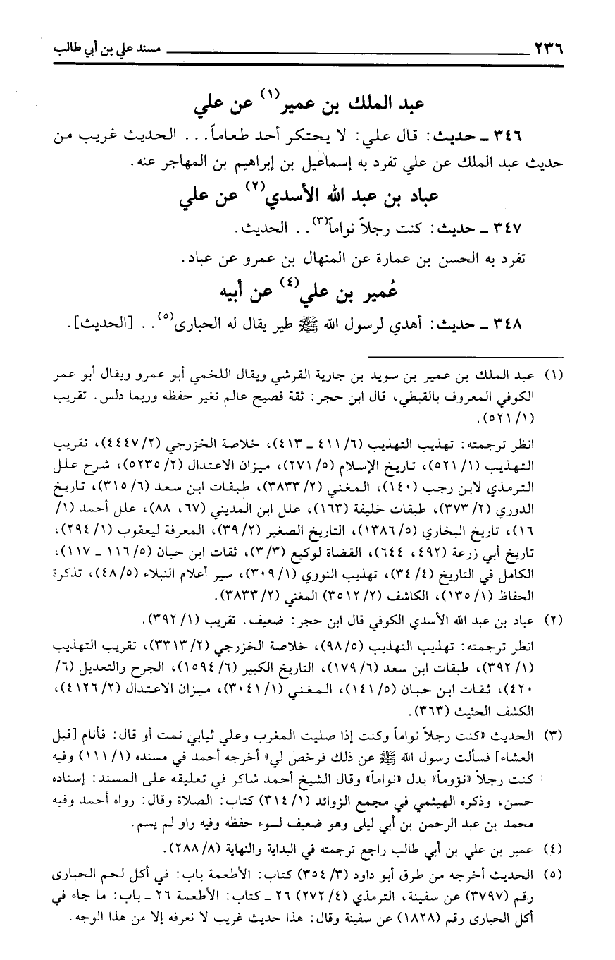 346 - حَدِيث: قَالَ عَليّ: لَا يحتكر أحد طَعَاما ... الحَدِيث غَرِيب من حَدِيث عبد الْملك عَن عَليّ تفرد بِهِ إِسْمَاعِيل بن إِبْرَاهِيم بن المُهَاجر عَنهُ.