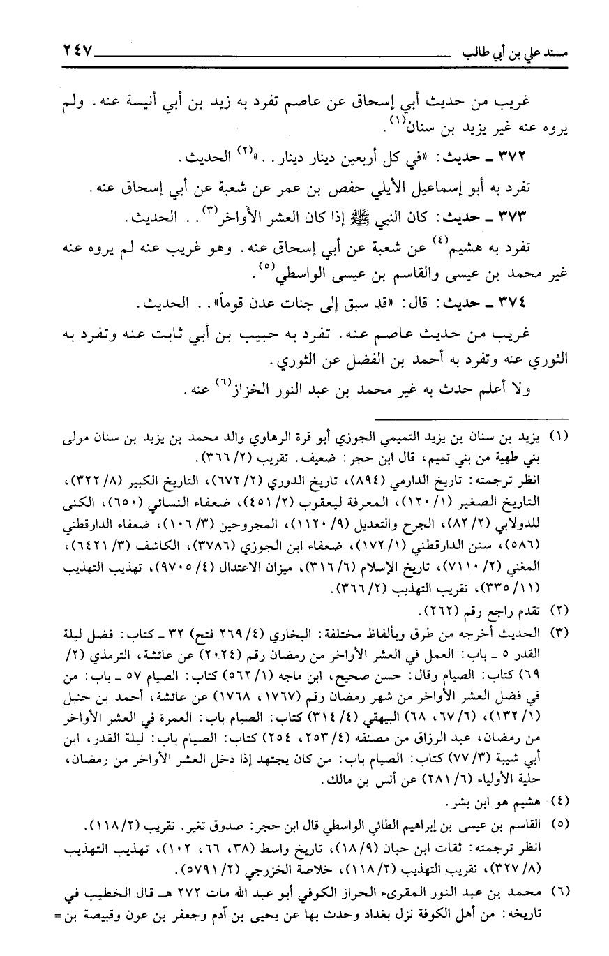 غَرِيب من حَدِيث أبي إِسْحَاق عَن عَاصِم تفرد بِهِ زيد بن أبي أنيسَة عَنهُ. وَلم يروه عَنهُ غير يزِيد بن سِنَان.
