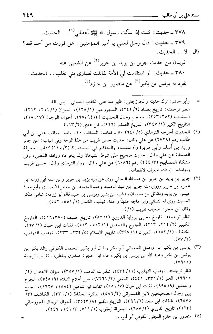379 - حَدِيث: قَالَ رجل لعَلي يَا أَمِير الْمُؤمنِينَ: هَل فَرَرْت من أحد قطّ؟ قَالَ: لَا. . الحَدِيث.