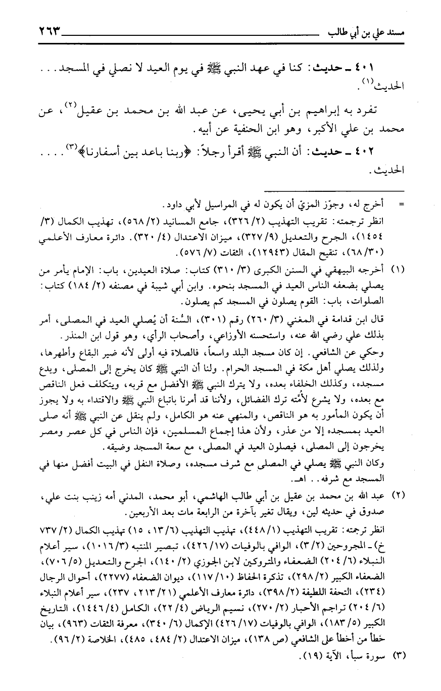 401 - حَدِيث: كُنَّا فِي عهد النَّبِي فِي يَوْم الْعِيد لَا نصلي فِي الْمَسْجِد ... الحَدِيث.