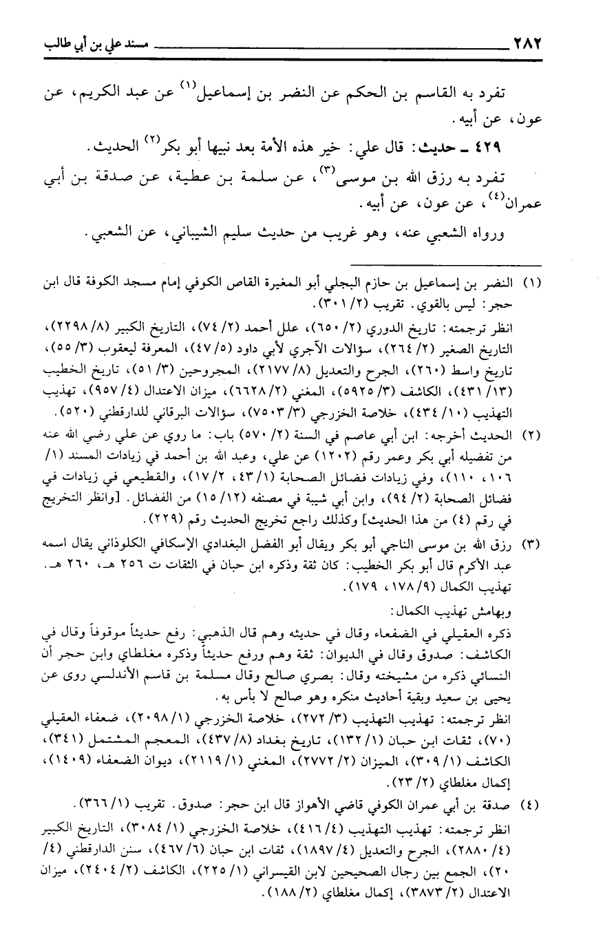 429 - حَدِيث: قَالَ عَليّ: خير هَذِه الْأمة بعد نبيها أَبُو بكر الحَدِيث.