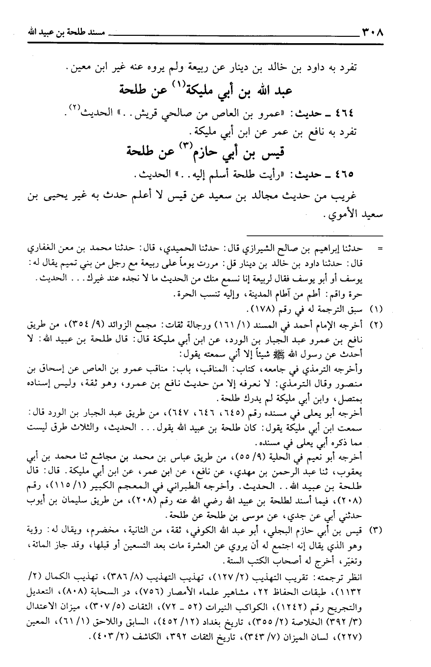 عبد الله بن أبي مليكَة عَن طَلْحَة