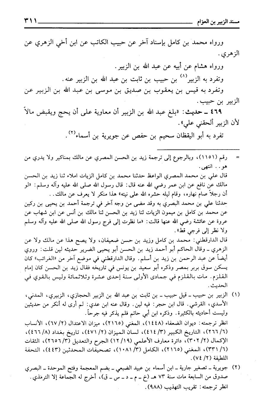 469 - حَدِيث: ((بلغ عبد الله بن الزبير أَن مُعَاوِيَة على أَن يحجّ وَيقبض مَالا لِأَن الزبير ألحقني عَليّ)) .