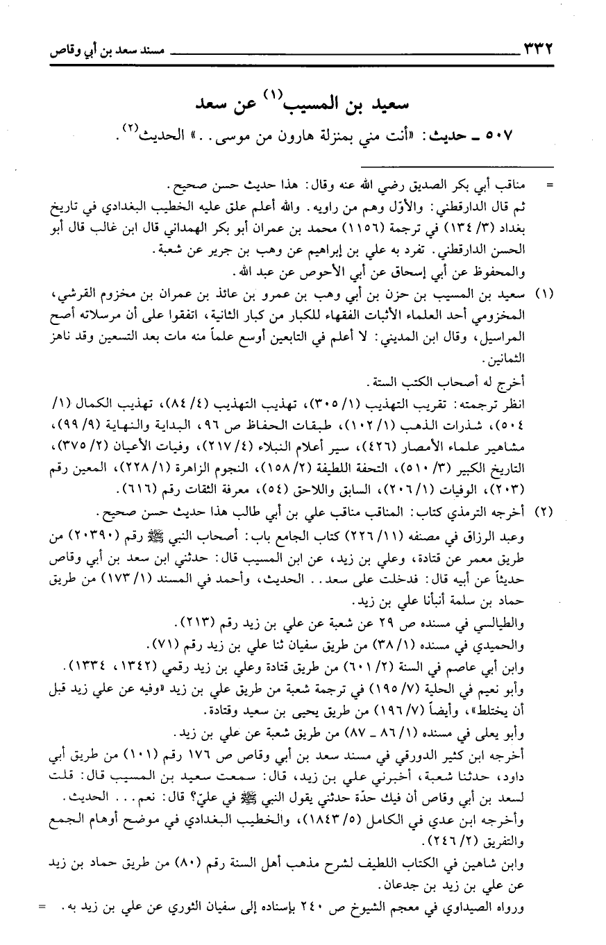 507 - حَدِيث: ((أَنْت مني بِمَنْزِلَة هَارُون من مُوسَى. .)) الحَدِيث.