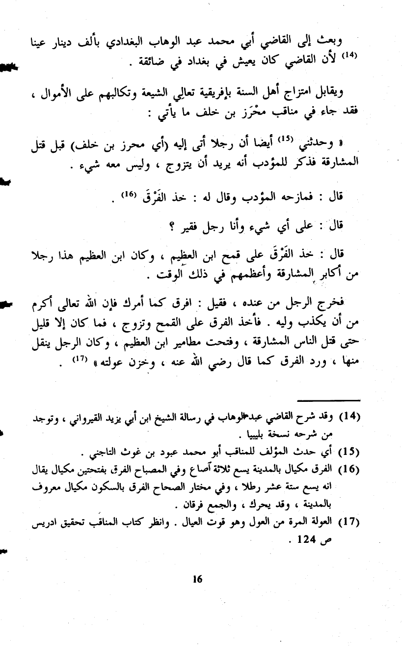 (¬14) وقد شرح القاضي عبد الوهاب في رسالة الشيخ ابن أبي يزيد القيرواني، وتوجد من شرحه نسخة بليبيا.