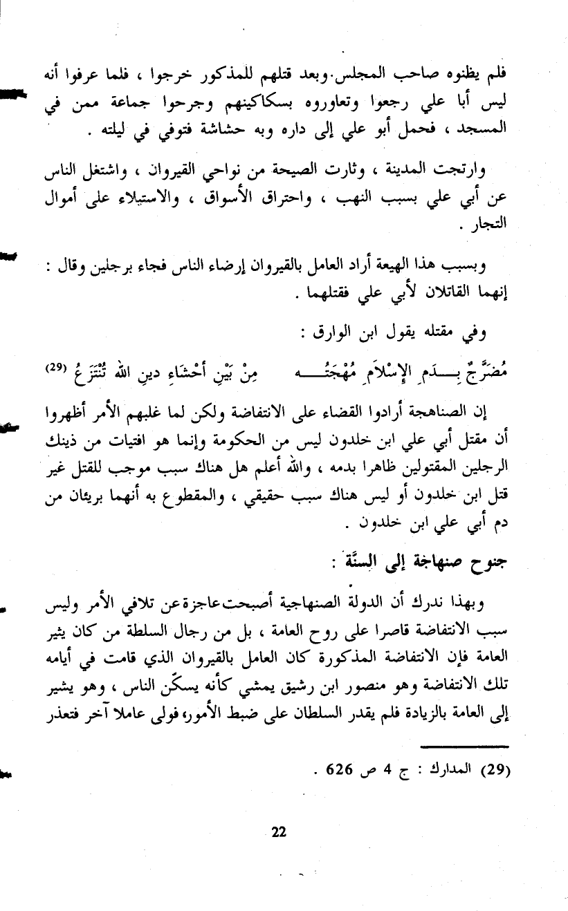 إن الصناهجة أرادوا القضاء على الانتفاضة ولكن لما غلبهم الأمر أظهروا أن مقتل أبي علي ابن خلدون ليس من الحكومة وإنما هو افتيات من ذينك الرجلين المقتولين ظاهرا بدمه، والله أعلم هل هناك سبب موجب للقتل غير قتل ابن خلدون أو ليس هناك سبب حقيقي، والمقطوع به أنهما بريئان من دم أبي علي ابن خلدون.