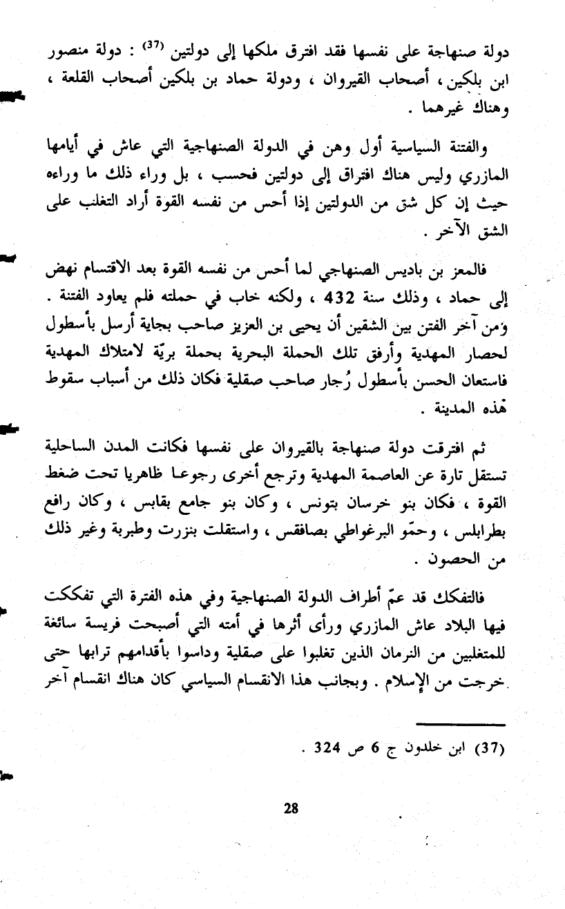 دولة صنهاجة على نفسها فقد افترق ملكها إلى دولتين (¬37): دولة منصور ابن بلكين، أصحاب القيروان، ودولة حماد بن بلكين أصحاب القلعة، وهناك غيرهما.