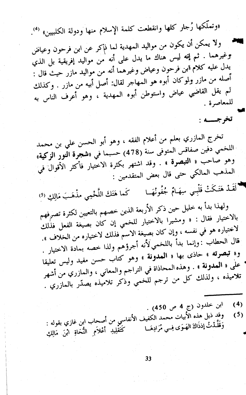 ولا يمكن أن يكون من مواليد المهدية لما ذكر عن ابن فرحون وعياض وغيرهما. ثم إنه ليس هناك ما يدل على أنه من مواليد إفريقية بل الذي يدل عليه كلام ابن فرحون وعياض وغيرهما أنه من مواليد مازر حيث قال: أصله من مازر ولو كان أبوه هو المهاجر لقال أصل أبيه من مازر. وكذلك لم يقل القاضى عياض وأستوطن أبوه المهدية، وهو أعرف الناس به للمعاصرة.