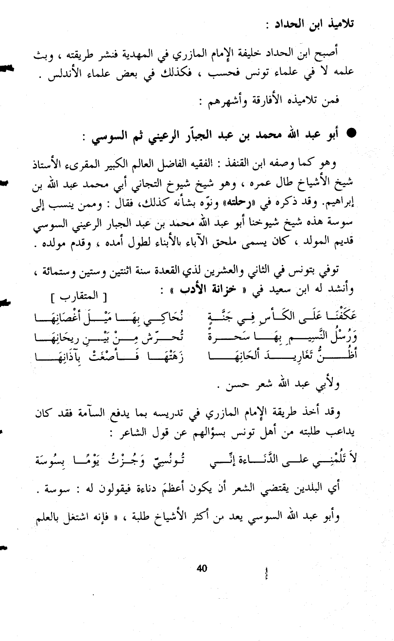 لاَ تَلُمْنِي على الدَّنَاءة إنِّي ... تُونُسِيّ وَجُزْتُ يَوْمًا بِسُوسَة