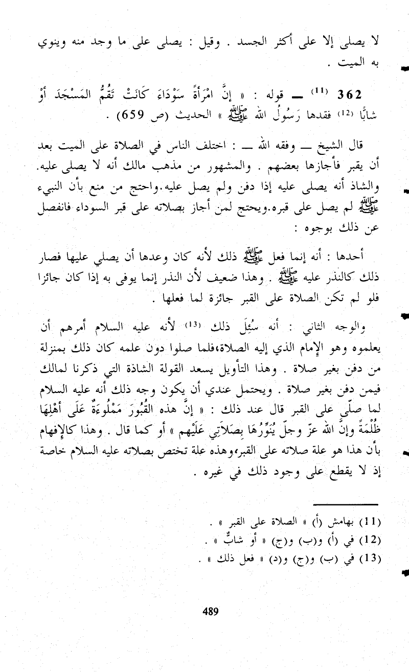 (¬11) بهامش (أ) "الصلاة على القبر".