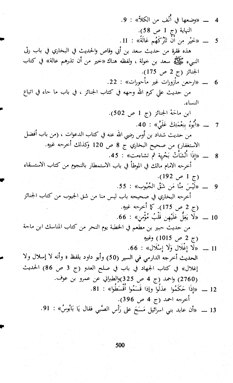 13 - "أن عابد بني إسرائيل مَسَحَ على رَأسِ الصَّبي فقال يَا بَابُوسُ": 91.