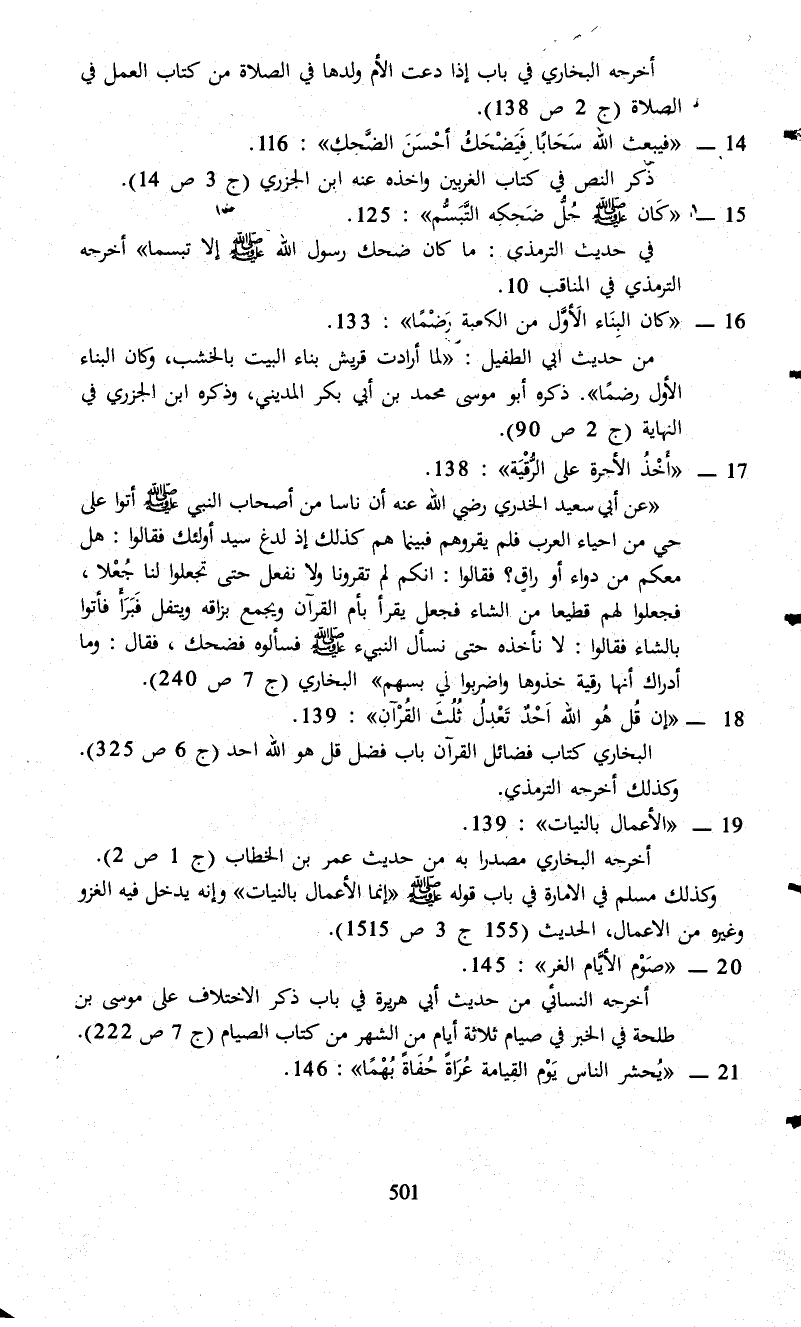 21 - " يُحشر الناس يَوْم القِيامة عُرَاةٌ حُفَاةٌ بُهْمًا": 146.