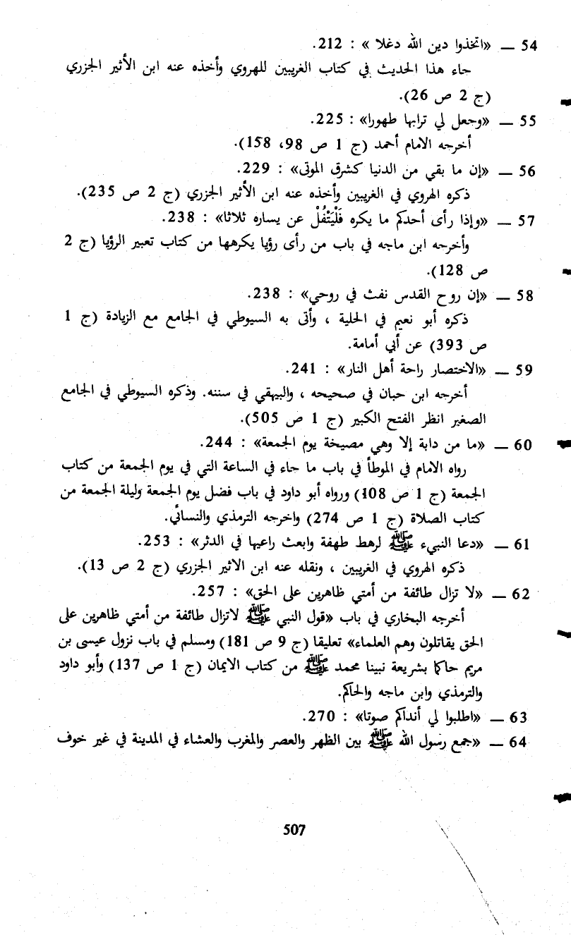 62 - "لا تزال طائفة من أمتي ظاهرين على الحق": 257.