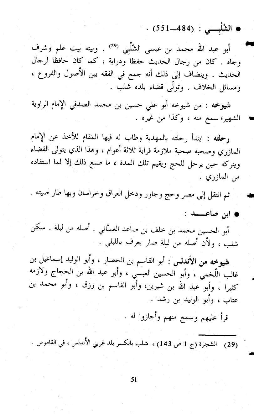 (¬29) الشجرة (ج1 ص 143)، شلب بالكسر بلد غربي الأندلس، في القاموس.