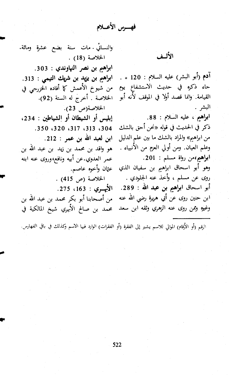 الرقم (أو الأرقام) الموالي للاسم يشير إلى الفقرة (أو الفقرات) الوارد فيها الاسم وكذلك في باقي الفهارس.